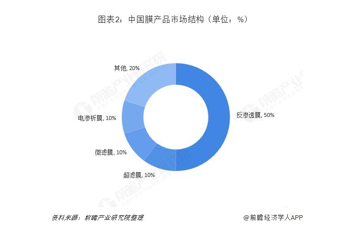 在特定產(chǎn)品方面,膜,總銷售額的50%以上的市場被反滲透膜(RO)和納濾膜(NF)、超濾膜(超濾),微濾膜(MF)和電滲析膜分別占10%,剩下的20%是被氣體分離膜、無機(jī)陶瓷膜、滲透膜等類型。