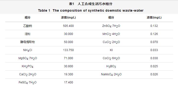 MBBR-MBR組合工藝通過(guò)蠕動(dòng)泵進(jìn)水,進(jìn)水為人工合成生活污水,其具體組分如表1所示。